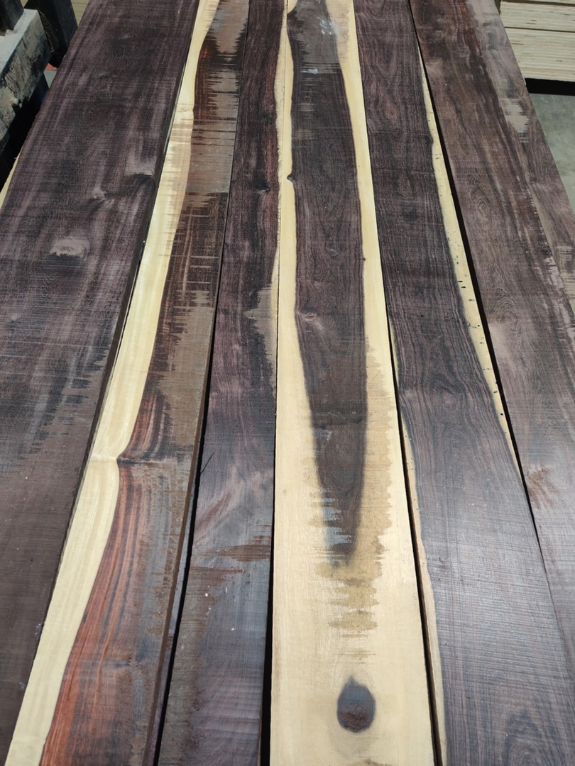 -Dark reddish brown with a purple hur throughout, the sapwood is a striking contrast to the rest of the colour